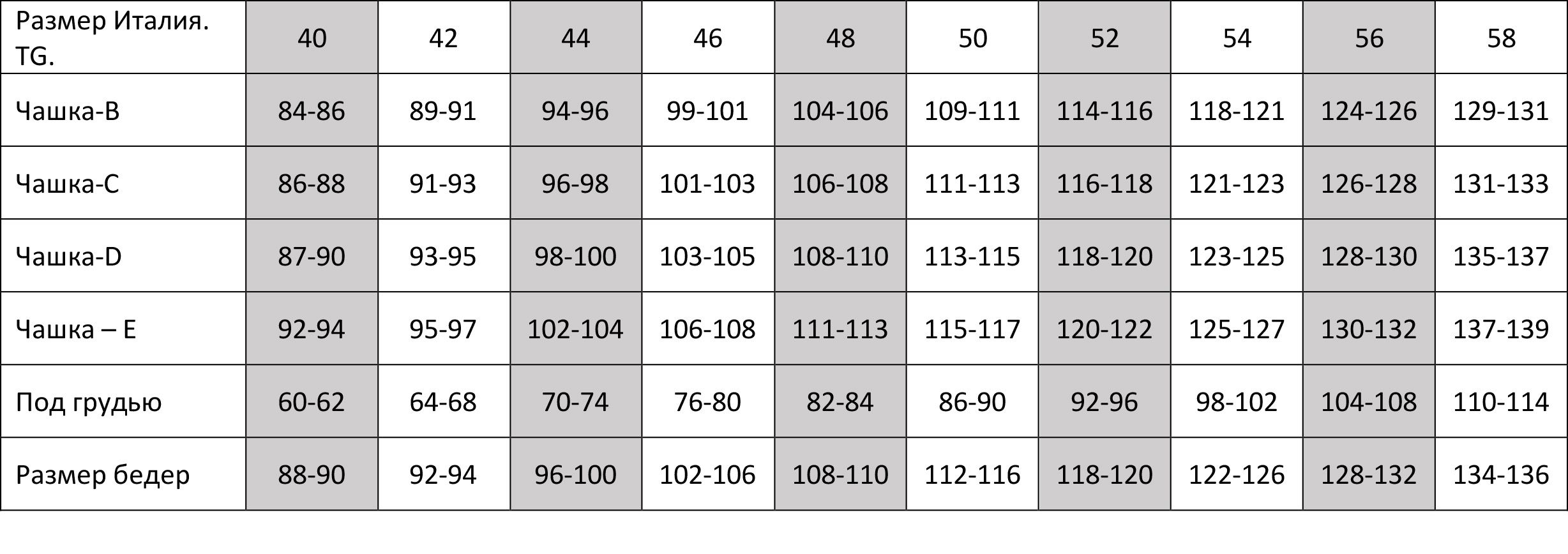 Сантиметровая лента проходит строго горизонтально, параллельно полу по самой выступающей точке груди и лопаткам, прилегает свободно, не стягивая грудь. Измерение снимайте на неглубоком вдохе.3. Посмотрите страну товара и определите свой размер по таблице ниже.