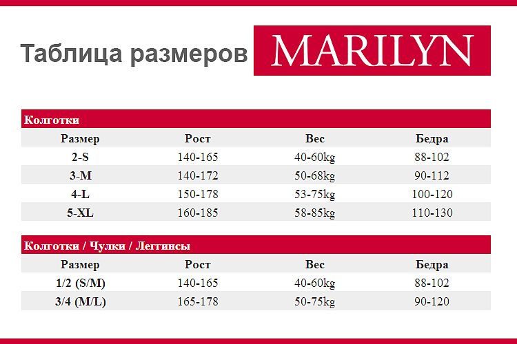Размеры колготок