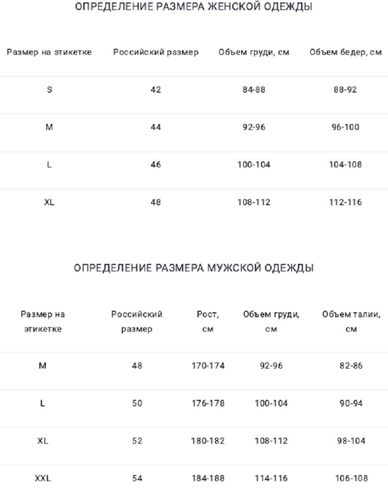 Таблица размеров