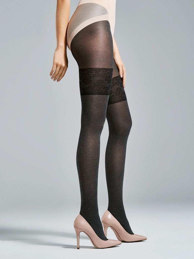 Колготки с рисунком, матовые, с удобной рубчатой отделкой и плоским швом. Хлопковая ластовица в размерах 3 и 4. Незримо усиленная часть пальца ноги. Меланж с имитацией рисунка.