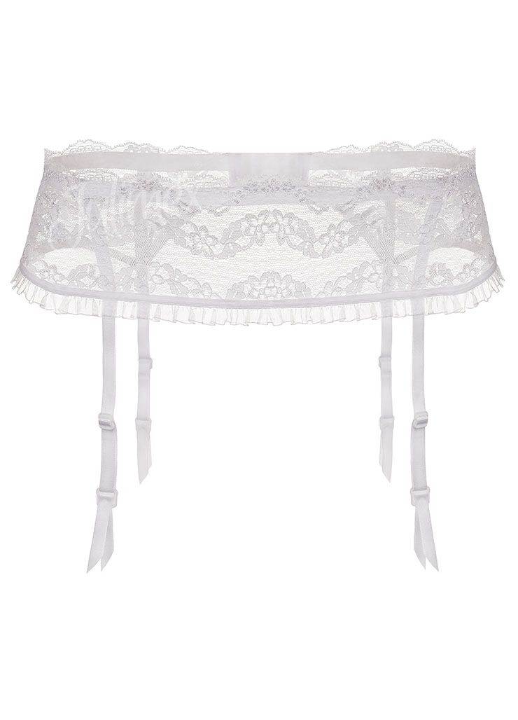 Элегантный и женственный пояс для чулок от Julimex. Пояс украшен цепочкой цветов на сеточке и отделан замысловатой оборкой. Длина резинки и застежка регулируются.